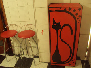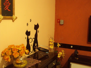 Um lugar maravilhoso, um clima ótimo, tudo combina, a luz, o som e a decoração, que inclusive tem como boa parte dos temas os animais e não poderia deixar de fora os felinos (super decorativos já por natureza,)...pena...a foto do melhor quadro foi apagada por um dedinho descuidado.