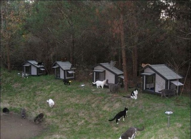Este homem salvou vários gatos. Confira as casinhas que construiu para eles.